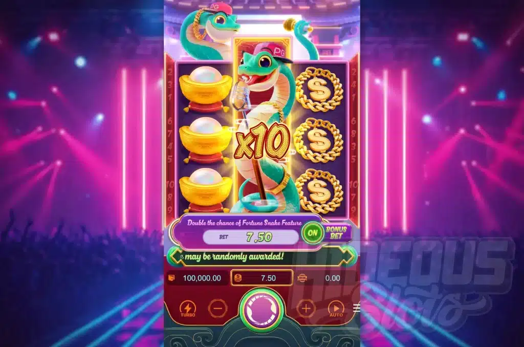 ปลดล็อกความมั่งคั่งและคูณโชคลาภของคุณด้วย โบนัสเกม FortuneSnake ตัวคูณเงินรางวัลเป็น x10 เมื่อมีสัญลักษณ์ Wild 4 ตัวปรากฏขึ้นในรีลที่ 2 ฟีเจอร์โบนัส FortuneSnake สามารถเปิดใช้งานได้แบบสุ่มในระหว่างการหมุนใดๆ ก็ได้ ผู้เล่น ยังสามารถเปิดใช้งานเดิมพันโบนัสเพื่อเพิ่มโอกาสในการเข้าสู่ฟีเจอร์โบนัส FortuneSnake เป็นสองเท่า